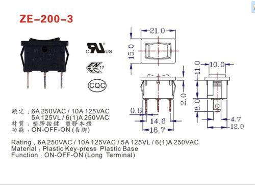 Zing Ear ZE-215 Illuminated Rocker Switch Black 15A 10A